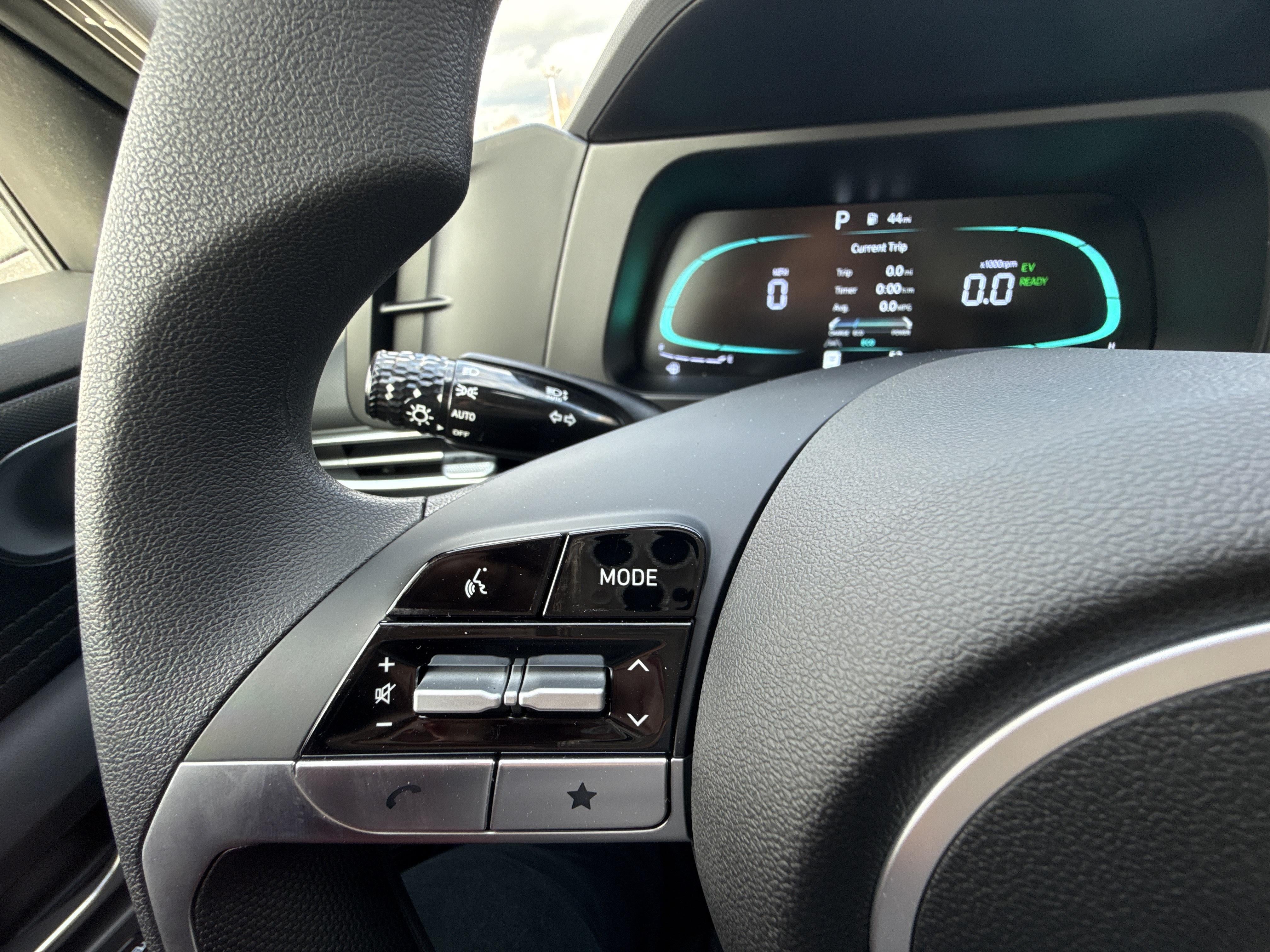 Inside, the Elantra Hybrid offers a spacious and well-appointed cabin, with premium cloth seat trim, a tilt and telescoping steering wheel, and a host of convenient storage solutions. The infotainment system, complete with AM/FM radio, HD display, and smartphone integration, keeps you connected and entertained throughout your journey.