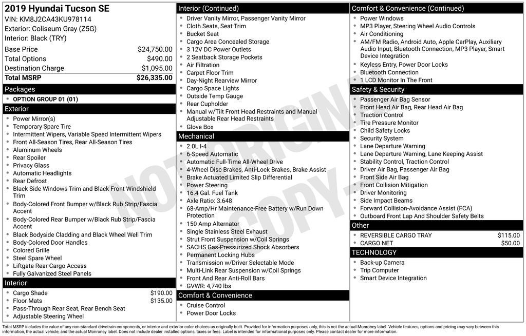 This online window sticker is provided for informational purposes only. Vehicle features, options, pricing and other information are subject to change. See your Hyundai dealer and the Monroney label affixed to the actual vehicle for the most up-to-date specifications and information.