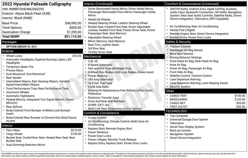 This online window sticker is provided for informational purposes only. Vehicle features, options, pricing and other information are subject to change. See your Hyundai dealer and the Monroney label affixed to the actual vehicle for the most up-to-date specifications and information.