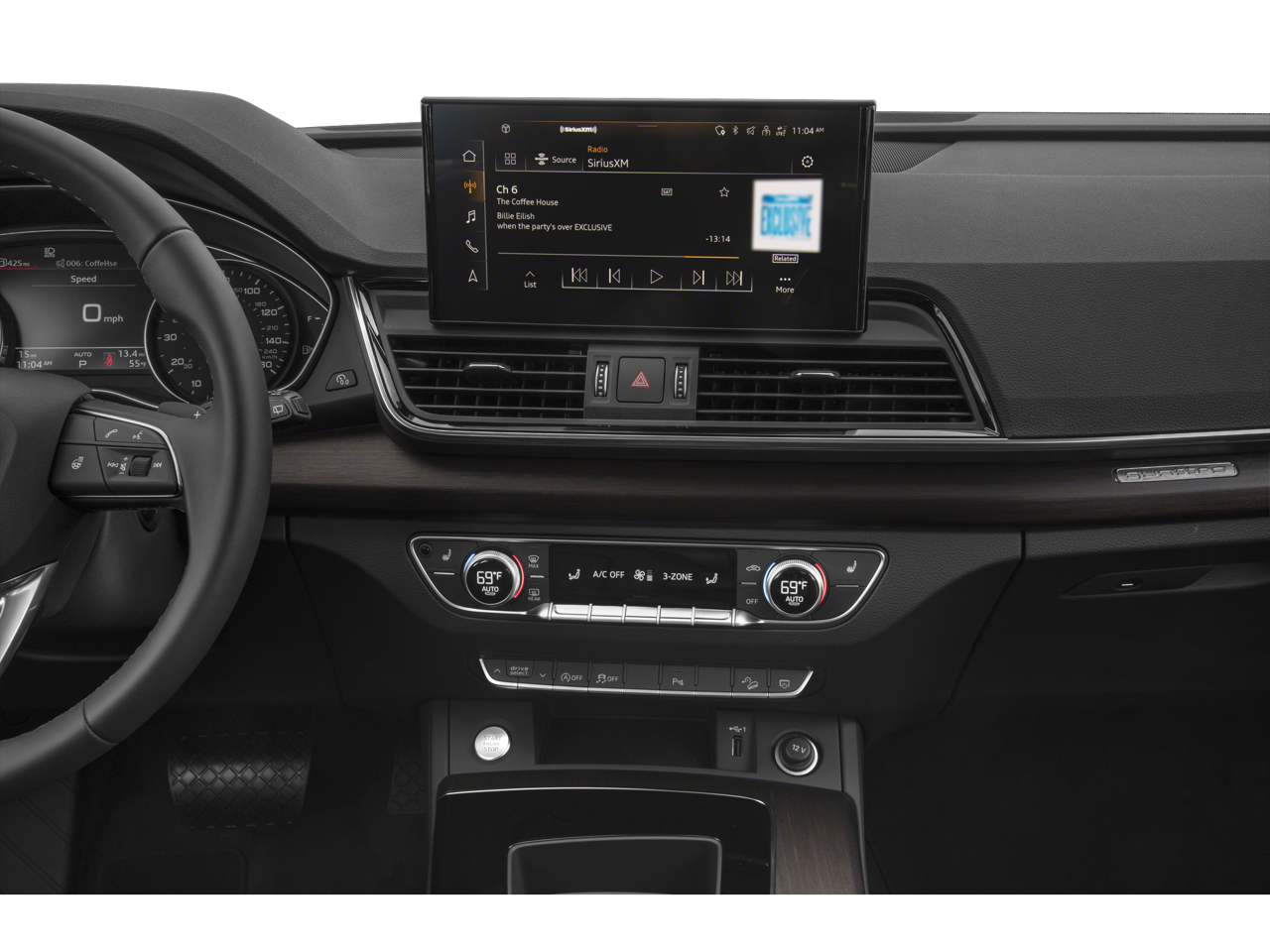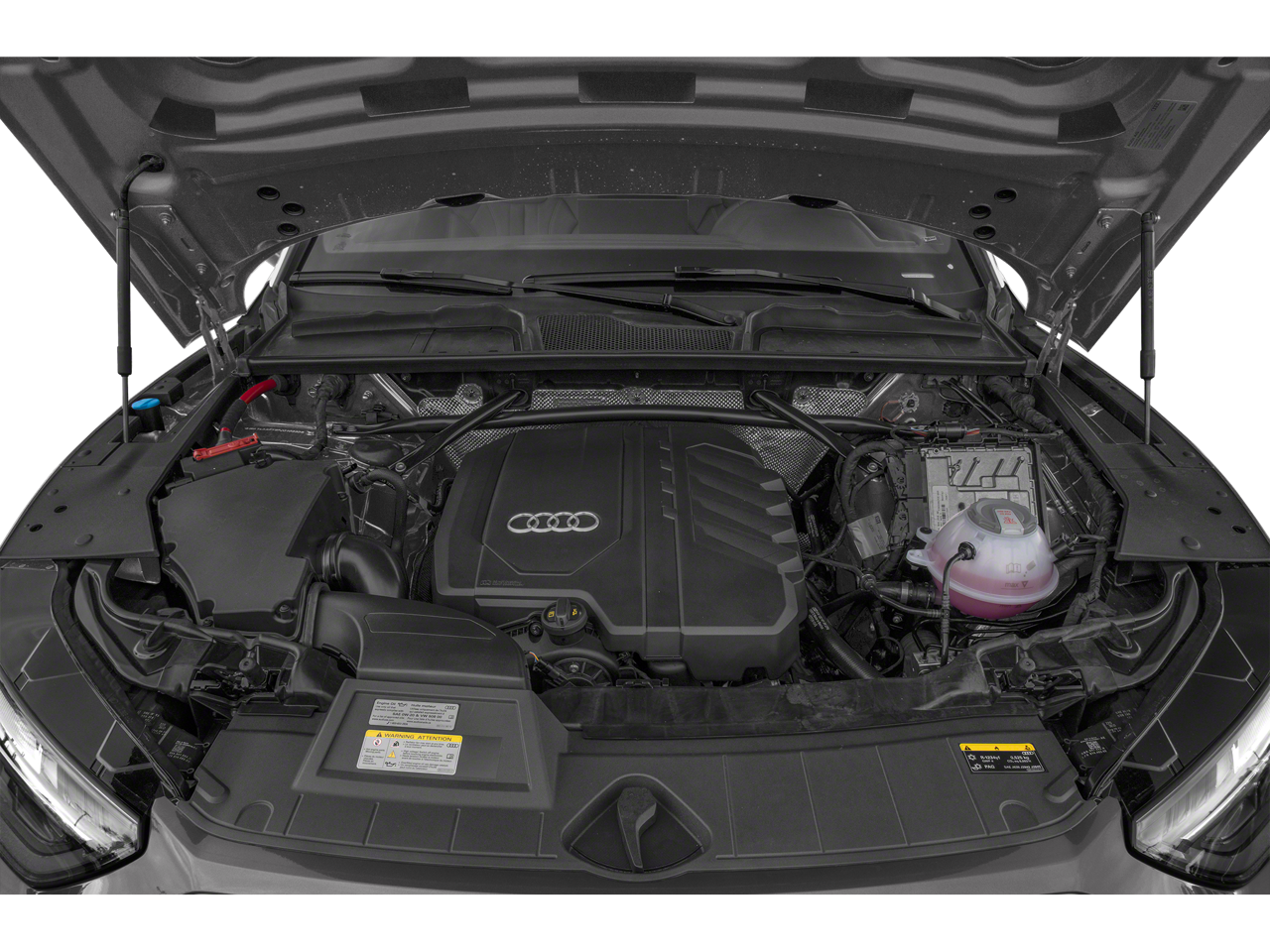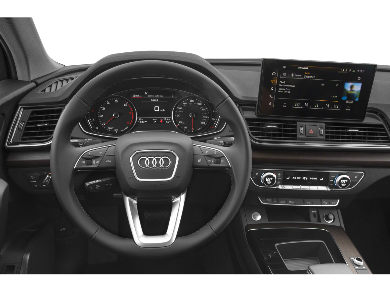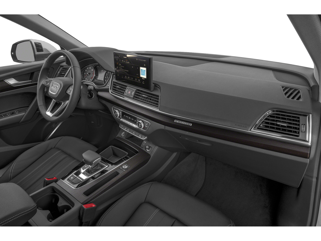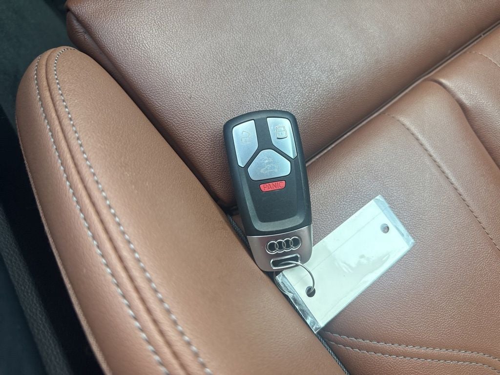 Vehicle is equipped: Convenience Package (Audi Advanced Key, Auto-Dimming Power Folding Exterior Mirrors, Driver Seat Memory, Heated Steering Wheel, and SiriusXM w/360L), 10 Speakers, 4-Wheel Disc Brakes, ABS brakes, Air Conditioning, Alloy wheels, AM/FM radio, Audi Beam-Rings, Audi Guard All-Weather Floor Mats (Set of 4), Audi Guard Wheel Lock Kit, Auto High-beam Headlights, Auto-dimming Rear-View mirror, Automatic temperature control, Axle Ratio: TBD, Brake assist, Bumpers: body-color, Compass, Delay-off headlights, Driver door bin, Driver vanity mirror, Dual front impact airbags, Dual front side impact airbags, Electronic Stability Control, Emergency communication system: Audi connect CARE, Exterior Parking Camera Rear, Four wheel independent suspension, Front anti-roll bar, Front Bucket Seats, Front Center Armrest, Front dual zone A/C, Front fog lights, Front reading lights, Garage door transmitter: HomeLink, Genuine wood console insert, Genuine wood dashboard insert, Genuine wood door panel insert, Heated 8-Way Power Front Bucket Sport Seats, Heated door mirrors, Heated front seats, Illuminated entry, Integrated Toll Module Delete (DISC), Leather Seating Surfaces, Leather Shift Knob, Low tire pressure warning, Occupant sensing airbag, Outside temperature display, Overhead airbag, Overhead console, Panic alarm, Passenger door bin, Passenger vanity mirror, Power door mirrors, Power driver seat, Power Liftgate, Power moonroof: Panoramic, Power passenger seat, Power steering, Power windows, Privacy Trunk Cover, Radio data system, Radio: Audi Sound System, Rain sensing wipers, Rear air conditioning, Rear anti-roll bar, Rear fog lights, Rear reading lights, Rear seat center armrest, Rear window defroster, Rear window wiper, Remote keyless entry, Security system, Speed control, Speed-sensing steering, Speed-Sensitive Wipers, Split folding rear seat, Spoiler, Steering wheel mounted audio controls, Tachometer, Telescoping steering wheel, Tilt steering wheel, Traction control, Trip computer, Turn signal indicator mirrors, Variably intermittent wipers, and Wheels: 19 5-Double-Arm Design Bi-Color Finish.