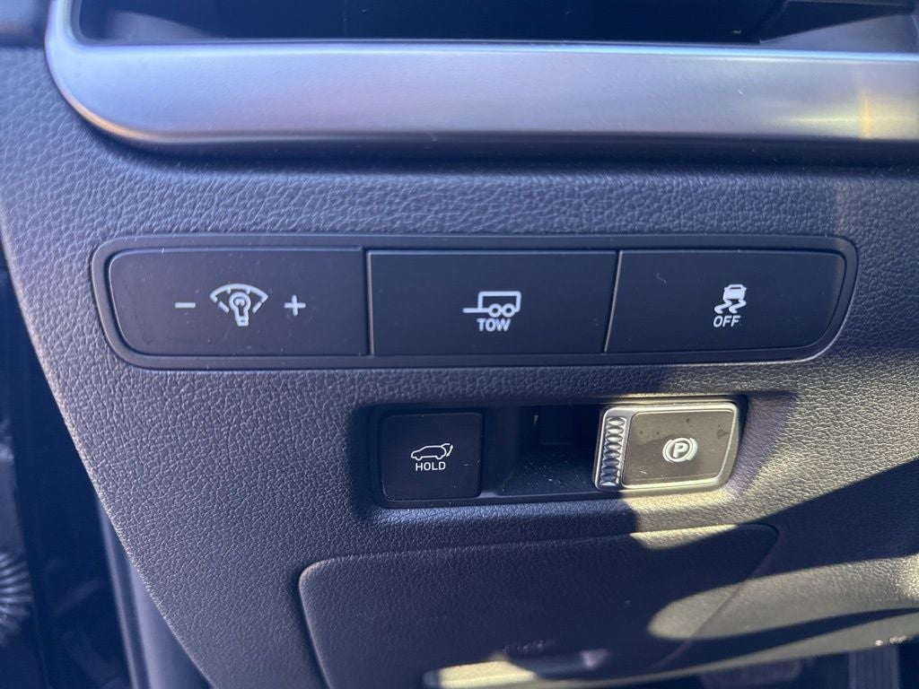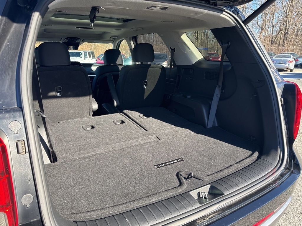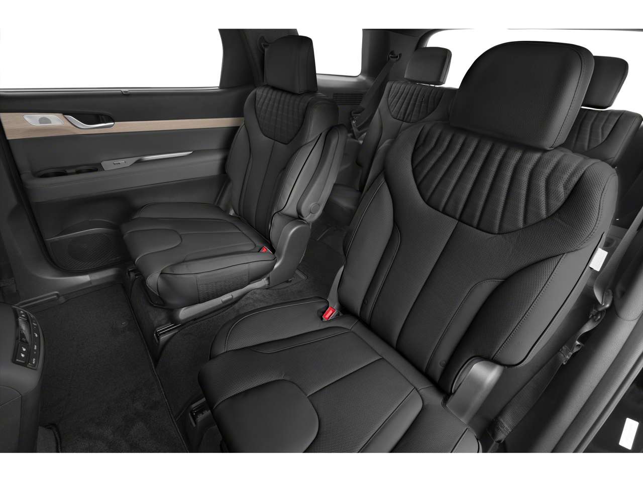 Vehicle is equipped: Option Group 01, Winter Package (All-Season Fitted Liners and Splash Trim), 12 Speakers, 3.648 Axle Ratio, 3rd row seats: split-bench, 4-Wheel Disc Brakes, ABS brakes, Air Conditioning, Alloy wheels, AM/FM radio: SiriusXM, Apple CarPlay & Android Auto, Auto High-beam Headlights, Auto-dimming door mirrors, Auto-dimming Rear-View mirror, Auto-leveling suspension, Automatic temperature control, Brake assist, Bumpers: body-color, Cargo Net, Cargo Tray, Carpeted Floor Mats, Compass, Delay-off headlights, Driver door bin, Driver vanity mirror, Dual front impact airbags, Dual front side impact airbags, Electronic Stability Control, Emergency communication system: Blue Link Connected Car Service (3-year complimentary subscription), Exterior Parking Camera Rear, First Aid Kit, Four wheel independent suspension, Front anti-roll bar, Front Bucket Seats, Front Center Armrest, Front dual zone A/C, Front reading lights, Fully automatic headlights, Garage door transmitter: HomeLink, harman/kardon® Speakers, Heads-Up Display, Heated & Ventilated Front Bucket Seats, Heated door mirrors, Heated front seats, Heated rear seats, Heated steering wheel, Illuminated entry, Knee airbag, Leather Seat Trim, Low tire pressure warning, Memory seat, Navigation System, Occupant sensing airbag, Outside temperature display, Overhead airbag, Overhead console, Panic alarm, Passenger door bin, Passenger vanity mirror, Power door mirrors, Power driver seat, Power Liftgate, Power moonroof, Power passenger seat, Power steering, Power windows, Radio data system, Radio: AM/FM/MP3 Premium Audio System, Rain sensing wipers, Rear air conditioning, Rear anti-roll bar, Rear audio controls, Rear reading lights, Rear side impact airbag, Rear window defroster, Rear window wiper, Reclining 3rd row seat, Remote keyless entry, Security system, Speed control, Speed-sensing steering, Split folding rear seat, Spoiler, Steering wheel mounted audio controls, Tachometer, Telescoping steering wheel, Tilt steering wheel, Traction control, Trip computer, Turn signal indicator mirrors, Variably intermittent wipers, Ventilated front seats, Ventilated rear seats, and Wheels: 20 x 7.5J Alloy.