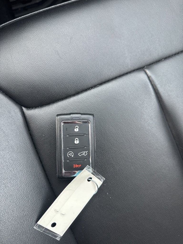 Vehicle is equipped: Quick Order Package 27F, 10 Speakers, 3.70 Rear Axle Ratio, 4-Wheel Disc Brakes, ABS brakes, Air Conditioning, Alloy wheels, AM/FM radio: SiriusXM with 360L, Anti-whiplash front head restraints, Audio memory, Auto High-beam Headlights, Automatic temperature control, Brake assist, Bumpers: body-color, Capri Leatherette Seats, Compass, Delay-off headlights, Driver door bin, Driver vanity mirror, Dual front impact airbags, Dual front side impact airbags, Electronic Stability Control, Four wheel independent suspension, Front anti-roll bar, Front Bucket Seats, Front Center Armrest w/Storage, Front dual zone A/C, Front fog lights, Front License Plate Bracket, Front reading lights, Fully automatic headlights, Garage door transmitter, Heated door mirrors, Heated front seats, Heated rear seats, Heated steering wheel, Heavy Duty Suspension, Illuminated entry, Knee airbag, Low tire pressure warning, Memory seat, Navigation System, Occupant sensing airbag, Outside temperature display, Overhead airbag, Overhead console, Panic alarm, ParkView Rear Back-Up Camera, Passenger door bin, Passenger vanity mirror, Power door mirrors, Power driver seat, Power Liftgate, Power moonroof, Power passenger seat, Power steering, Power windows, Radio data system, Radio: Uconnect 5 Nav w/10.1 Display, Rear anti-roll bar, Rear reading lights, Rear window defroster, Rear window wiper, Remote keyless entry, Security system, Speed control, Speed-Sensitive Wipers, Split folding rear seat, Spoiler, Steering wheel mounted audio controls, Tachometer, Telescoping steering wheel, Tilt steering wheel, Traction control, Trip computer, Turn signal indicator mirrors, Variably intermittent wipers, Voltmeter, and Wheels: 18 x 8 Fully Painted Aluminum.