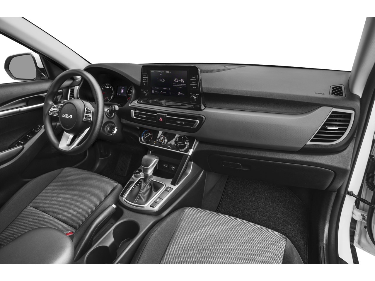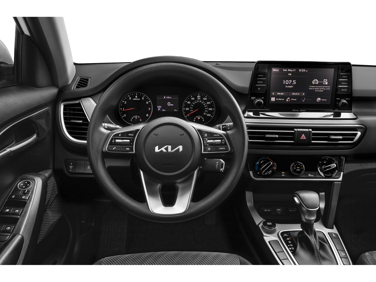 The Seltos LX's exterior is enhanced by its sleek, modern design, complemented by the Gray exterior color and 17 alloy wheels with a dark gray finish. Step inside and you'll be greeted by a spacious and well-appointed cabin, featuring cloth seat trim and a host of thoughtful amenities, including air conditioning, power windows, and steering wheel-mounted audio controls.