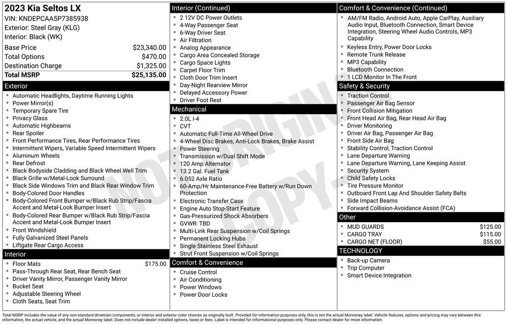 - Vehicle Name: Kia Seltos