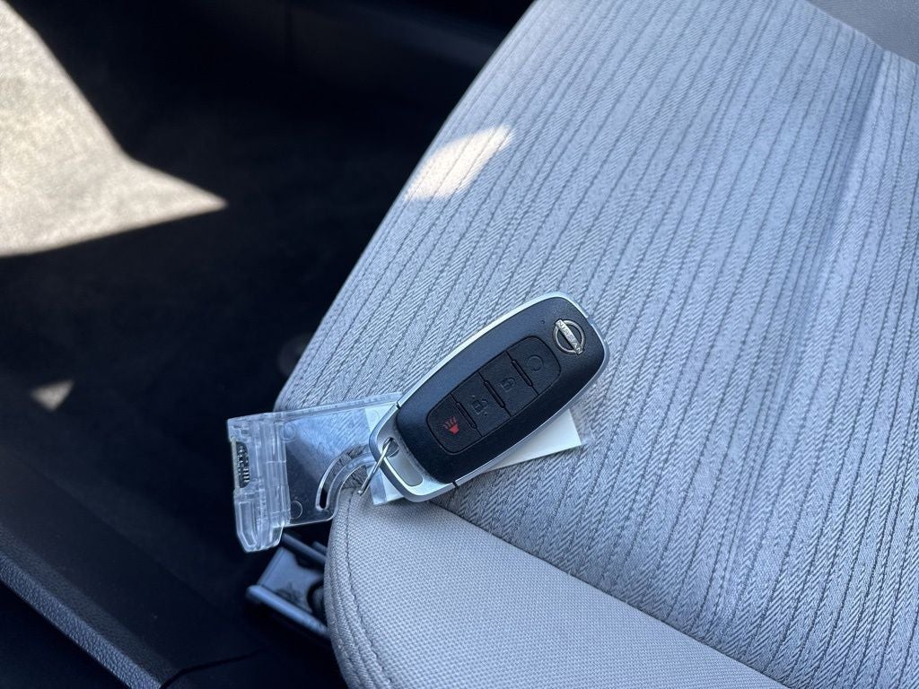 Vehicle is equipped: 18 Aluminum Alloy Wheels, 4-Wheel Disc Brakes, 5.604 Axle Ratio, 6 Speakers, ABS brakes, Air Conditioning, Alloy wheels, AM/FM Radio, AM/FM radio: SiriusXM, Auto High-beam Headlights, Automatic temperature control, Black Splash Guards (Set of 4), Brake assist, Bumpers: body-color, Chrome Rear Bumper Protector, Cloth Seat Trim, Delay-off headlights, Driver door bin, Driver vanity mirror, Dual front impact airbags, Dual front side impact airbags, Electronic Stability Control, Emergency communication system: NissanConnect Services, Four wheel independent suspension, Front anti-roll bar, Front Bucket Seats, Front Center Armrest, Front dual zone A/C, Front reading lights, Fully automatic headlights, Heated door mirrors, Illuminated entry, Knee airbag, Low tire pressure warning, NissanConnect featuring Apple CarPlay and Android Auto, Occupant sensing airbag, Outside temperature display, Overhead airbag, Overhead console, Panic alarm, Passenger door bin, Passenger vanity mirror, Power door mirrors, Power driver seat, Power steering, Power windows, Radio data system, Rear anti-roll bar, Rear Parking Sensors, Rear seat center armrest, Rear side impact airbag, Rear window defroster, Rear window wiper, Remote keyless entry, Security system, Speed control, Speed-Sensitive Wipers, Split folding rear seat, Spoiler, Steering wheel mounted audio controls, Tachometer, Telescoping steering wheel, Tilt steering wheel, Traction control, Trip computer, Turn signal indicator mirrors, and Variably intermittent wipers.