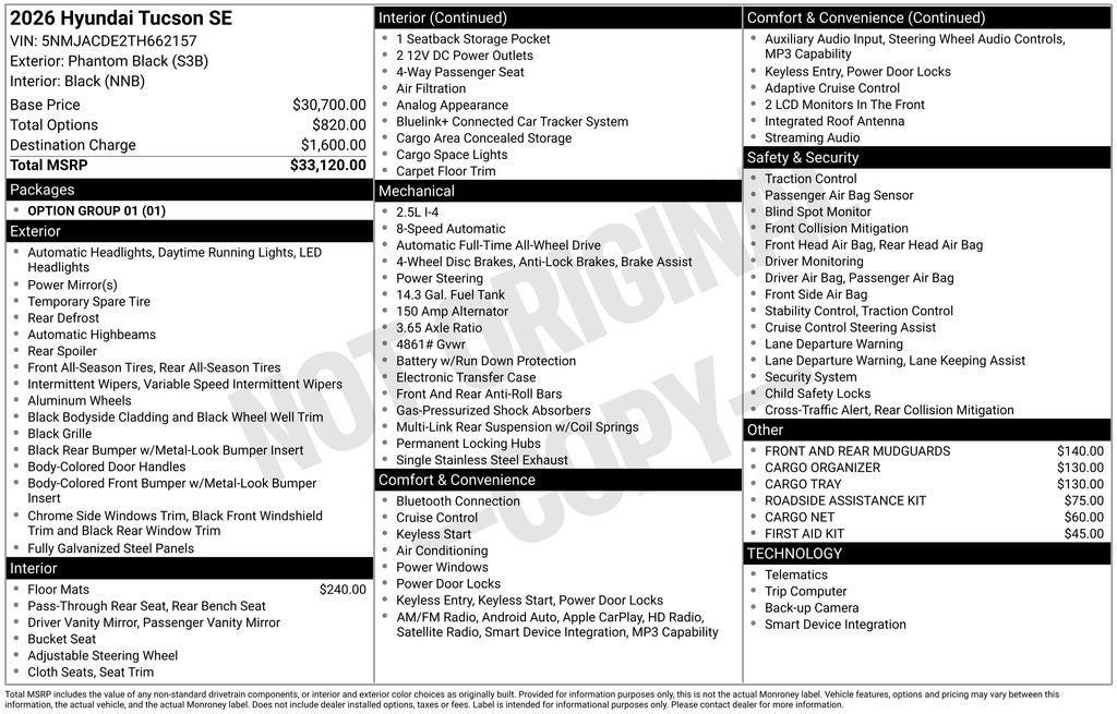 This online window sticker is provided for informational purposes only. Vehicle features, options, pricing and other information are subject to change. See your Hyundai dealer and the Monroney label affixed to the actual vehicle for the most up-to-date specifications and information.