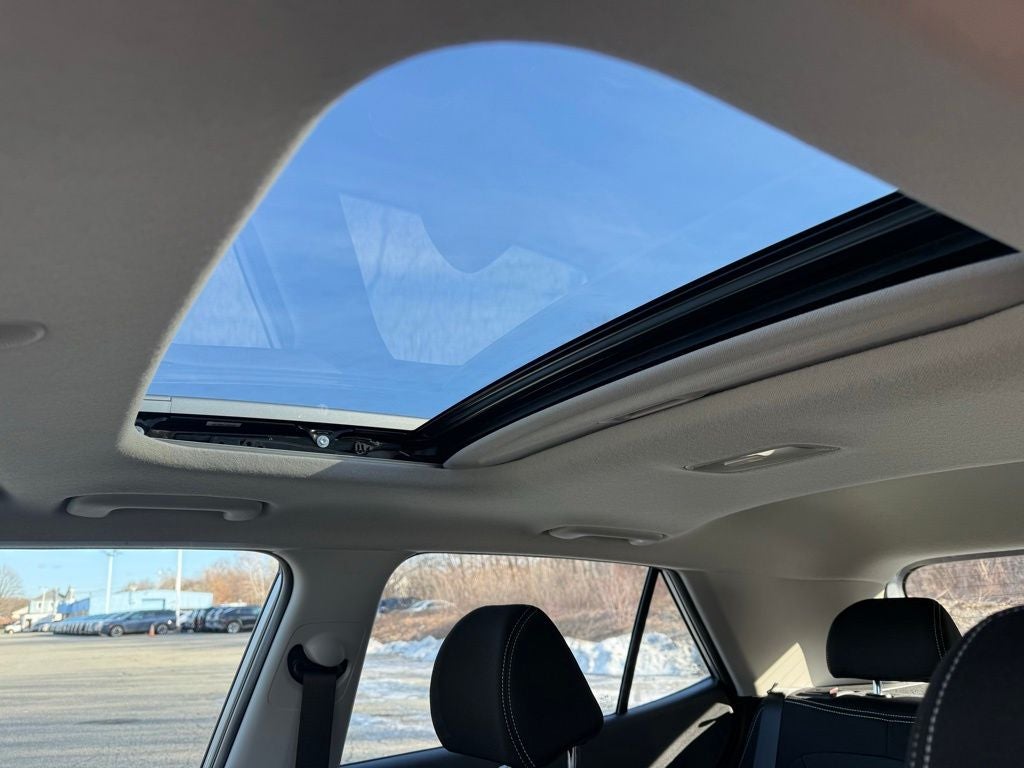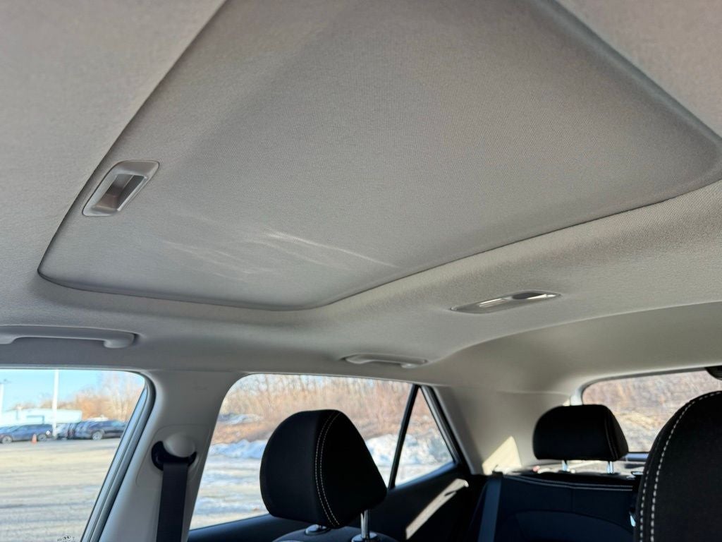 Vehicle is equipped: Option Group 01, 4-Wheel Disc Brakes, 6 Speakers, 6.5J x 17 Alloy Wheels, ABS brakes, Air Conditioning, Alloy wheels, AM/FM radio, Apple CarPlay & Android Auto, Auto High-beam Headlights, Automatic temperature control, Brake assist, Bumpers: body-color, Cargo Tray, Carpeted Floor Mats, Cloth Seat Trim, Delay-off headlights, Driver door bin, Driver vanity mirror, Dual front impact airbags, Dual front side impact airbags, Electronic Stability Control, Front anti-roll bar, Front Bucket Seats, Front Center Armrest, Front reading lights, Front wheel independent suspension, Fully automatic headlights, Heated door mirrors, Heated Front Bucket Seats, Heated front seats, Illuminated entry, Leather Shift Knob, Leather steering wheel, Low tire pressure warning, Occupant sensing airbag, Outside temperature display, Overhead airbag, Overhead console, Panic alarm, Passenger door bin, Passenger vanity mirror, Power door mirrors, Power moonroof, Power steering, Power windows, Radio: AM/FM/HD Display Audio, Rear Seat Cup Holder, Rear window defroster, Rear window wiper, Remote keyless entry, Security system, Speed control, Speed-sensing steering, Split folding rear seat, Spoiler, Steering wheel mounted audio controls, Tachometer, Telescoping steering wheel, Tilt steering wheel, Traction control, Trip computer, and Variably intermittent wipers.